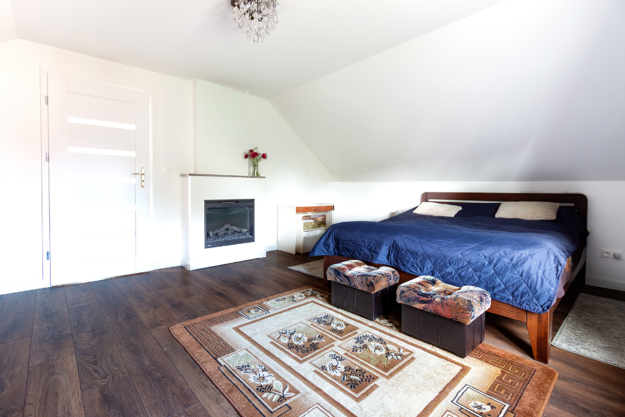 - ogrzewanie piecem kaflowym (z funkcją gotowania), dodatkowo piec typu „koza”, elektryczne ogrzewanie podłogowe w łazienkach i kuchniach, kominek elektryczny w sypialni,
